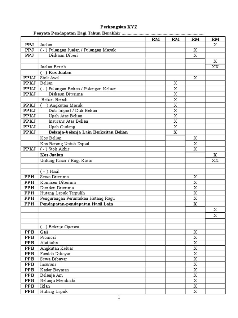24 Full PDFs related to this paper. Isi borang P untuk perkongsian. Format penyata pendapatan kiamsiap trading penyata pendapatan bagi tahun berakhir 31 disember 20x1 jualan xxxxx tolakpulangan masukjualan xxx jualan bersih xxxxx tolakkos jualan stok awal xxxx belian xxxxx tolakpulangan keluarbelian xxx belian bersih.